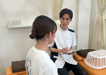 たとえば、ボキボキする施術が苦手な方にはボキボキしない施術。痛みのある部位には優しくアプローチをするなど、来院者さまが不安な思いや苦痛な思いをされないような施術を行っています。
