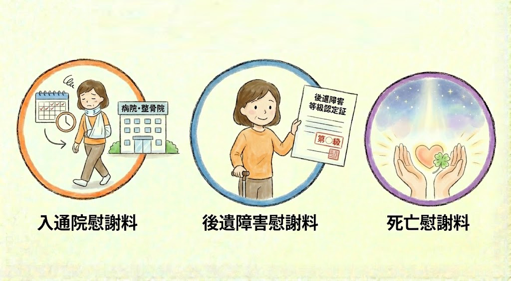 交通事故の慰謝料は、主に以下の3つになります。